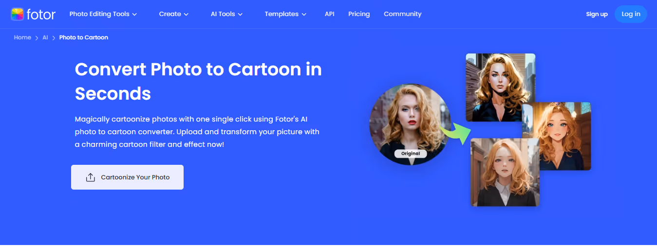 Picsart is renowned for its comprehensive editing platform, which caters to diverse creative needs, encompassing photo editing, video generation, and design. One of Picsart’s standout tools is the AI cartoonizer. Designed with a broad range of AI filters and intuitive editing functionalities, this tool is sure to add a charming touch to your pictures.