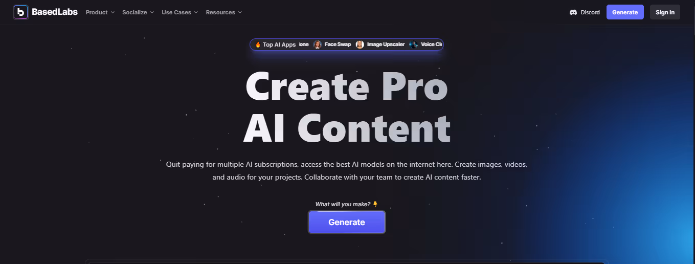 What makes BasedLabs stand out is that it offers a Prompt section, allowing you to describe how you want the outputs to appear. You can also access its Discord community to share your work or find inspiration.