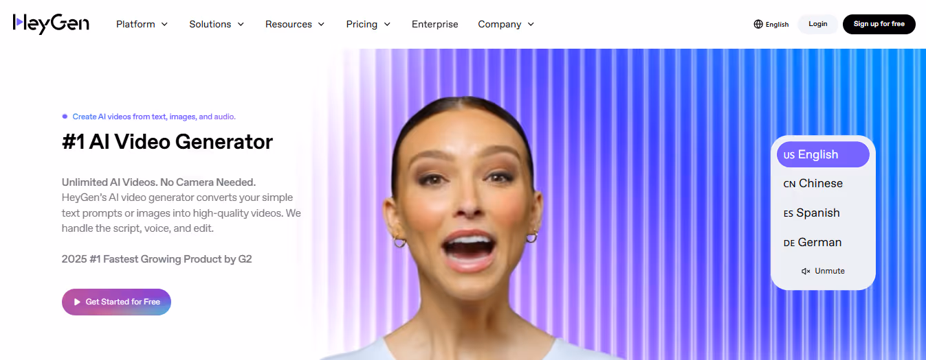 HeyGen gives you over 120 AI avatars, 300 voices, and more than 300 templates to speed production. It suits product marketing, healthcare communications, sales outreach, and learning and development. The platform emphasizes template-driven workflows so teams can scale consistent messaging across locales.