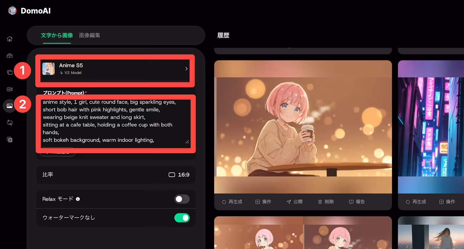 まずは変身動画の「出発点」となるアニメ画像を生成していきます。 DomoAIのAI画像生成機能を使えば、テキストプロンプトを入力するだけで高品質なアニメ画像を簡単に作成できます。