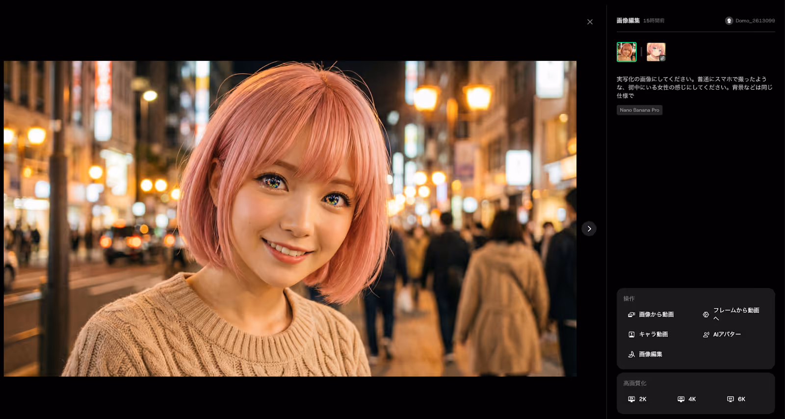次に、生成したアニメ画像をNanoBanana Proで実写風の画像に変換します。