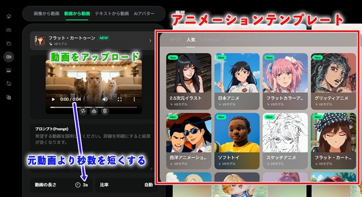 アニメーション変換時は、オリジナル動画の尺より短い秒数を指定するほうが、意図しない変化(偶然性)が入りにくくなります。
