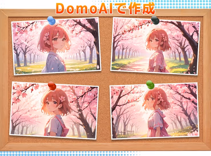 一方、DomoAIでは、比較的似通った構図の画像が生成される傾向が見られ、安定した画面構成で表現されている点が特徴です。
