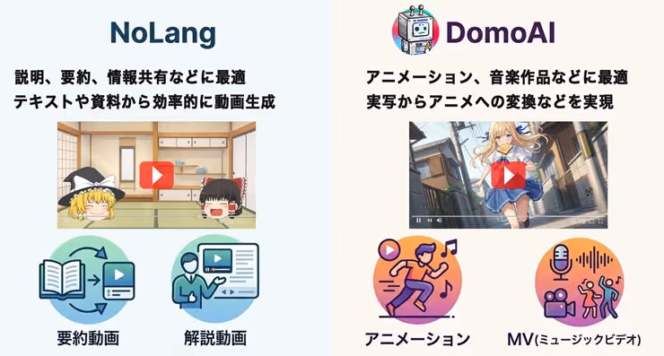 このように、情報を効率よく伝える動画を作りたい場合は「NoLang」、映像そのものの表現を重視したい場合は「DomoAI」と考えると、用途の違いが分かりやすいのではないでしょうか。