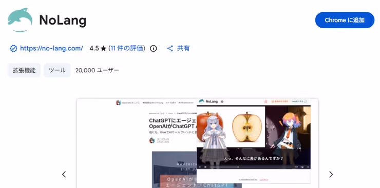 NoLangの特徴的な機能のひとつが、Google Chromeウェブストアで提供されている「NoLang 拡張機能」です。