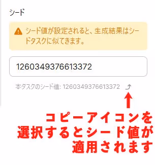 シード値とは、生成される画像ごとに割り振られるユニークな値のことで、この値を固定すると、似たようなキャラクターを安定して生成することができます。