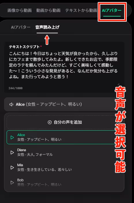 さらに、自分の声をアップロードして音声に反映させることも可能です。