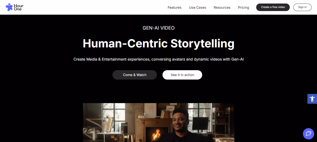 Hour One converts text into videos using selectable characters and themes, producing polished product and training content in minutes. It targets business users who need repeatable, scalable outputs without full production teams.