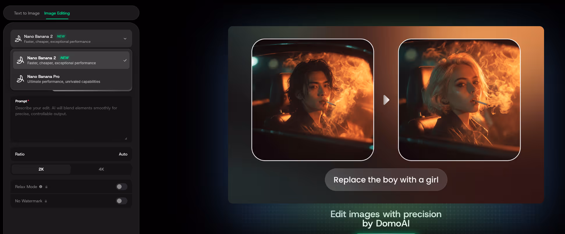 나노 바나나 2는 이제 풀 4K 해상도 출력을 지원합니다.마케팅 에셋, 제품 비주얼, 세부 컴포지트 등 무엇을 제작하든 업스케일링 없이 에디터에서 바로 사용할 수 있는 선명한 고해상도 결과를 얻을 수 있습니다.